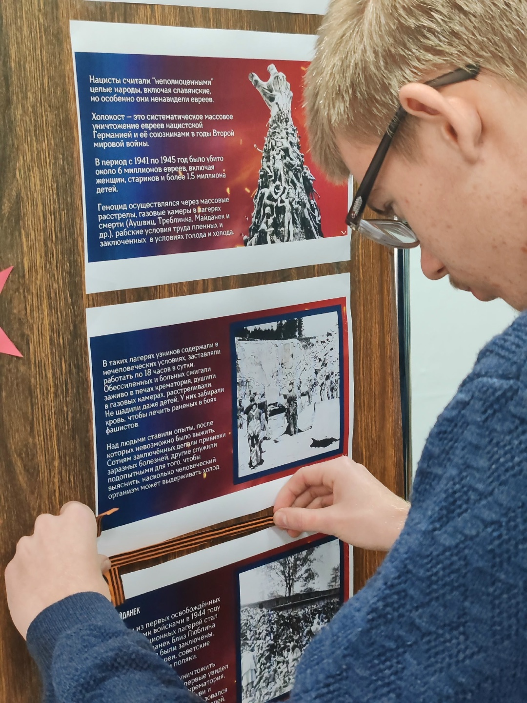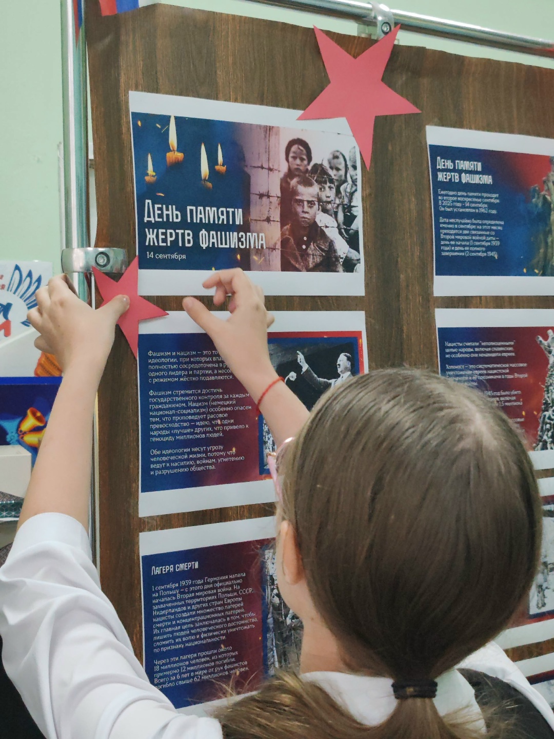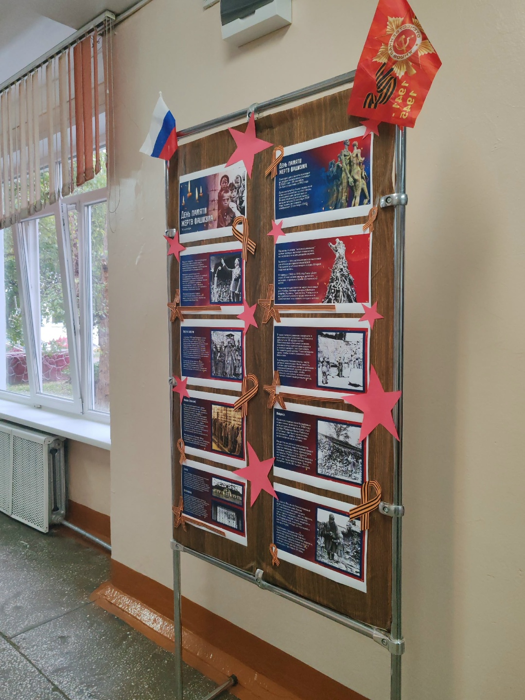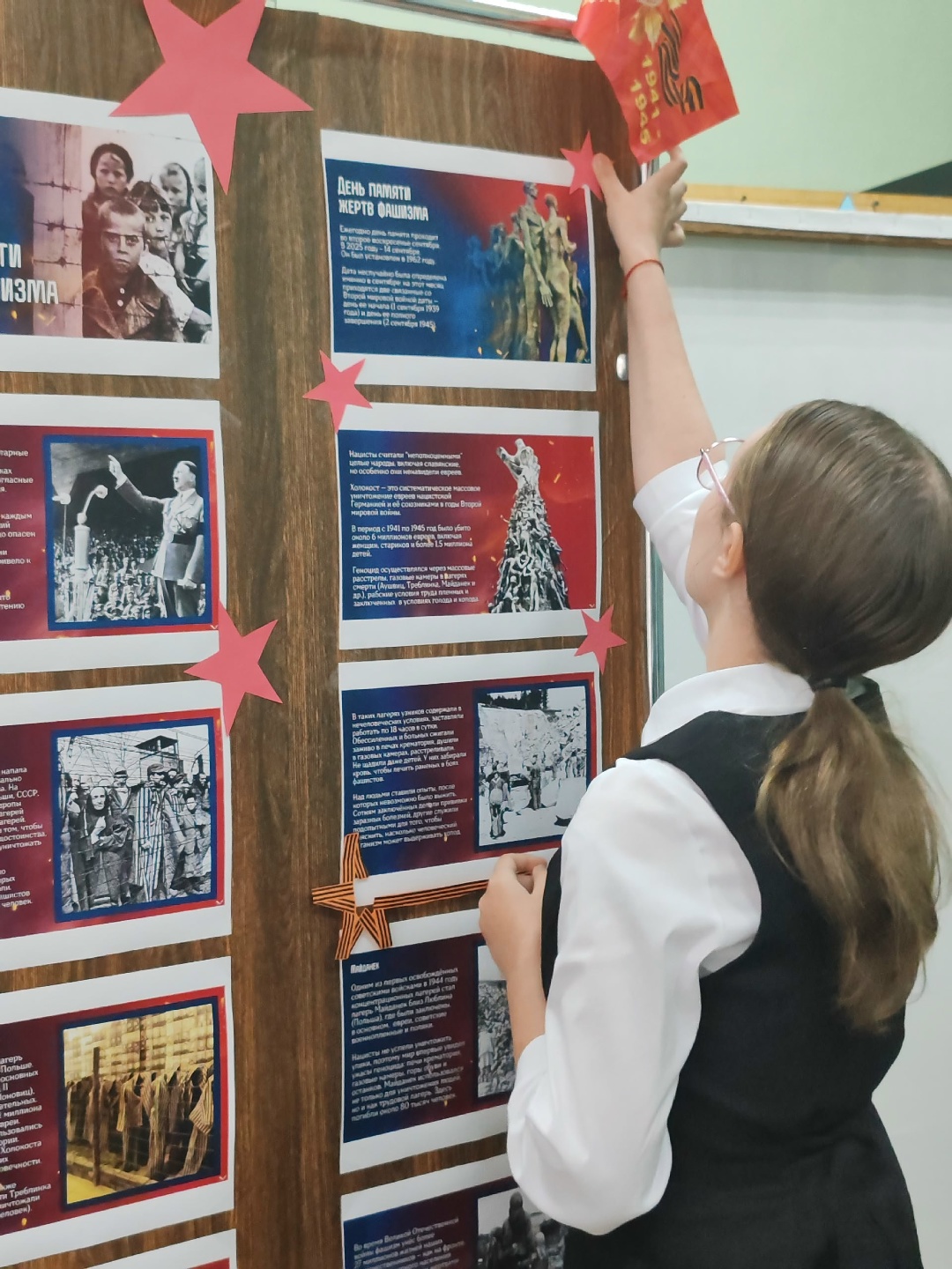 В нашей школе прошла акция «День памяти жертв фашизма». Ученики 10 "Б" класса подготовили и оформили информационный стенд, на котором представлены исторические факты, фотографии и воспоминания о пострадавших в годы войны.